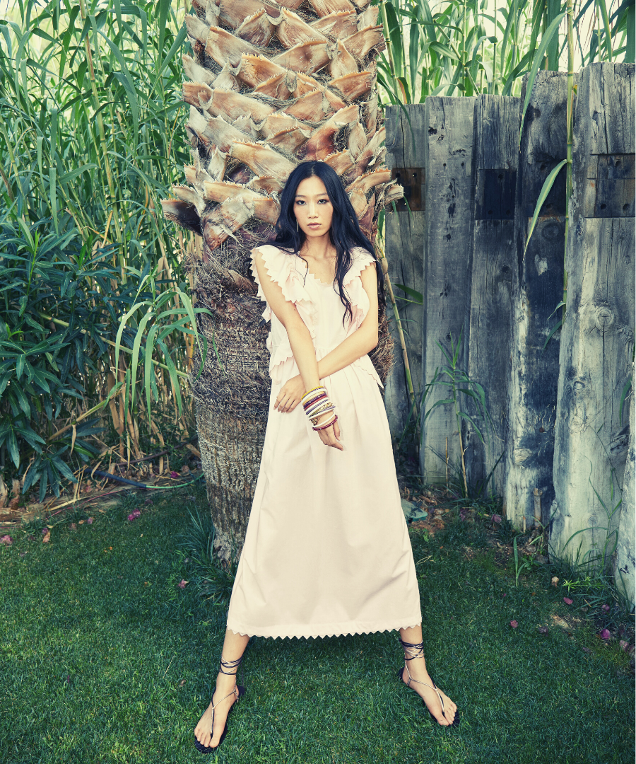 Midi-langes Kleid Hally von Premium Brand MUNTHE ist ein tolles, luftiges Urlaubs/ Sommerkleid im zarten Vanille Ton. Mit besonderem Rückenausschnitt und Volants entlang des Ärmelausschnittes. Volantkanten haben eine Zick-Zack ähnliche Form und geben dem Kleid das gewisse Etwas.