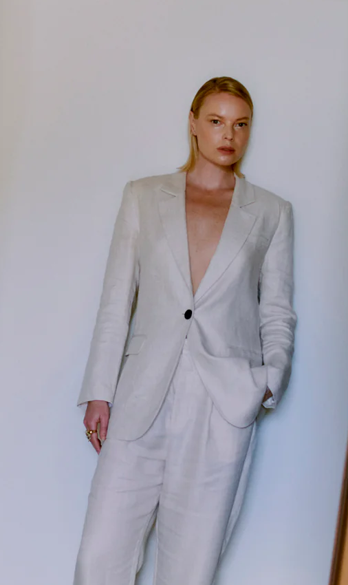 CMNATURE BLAZER IN JET STREAM - LEINEN BLAZER IN IVORY