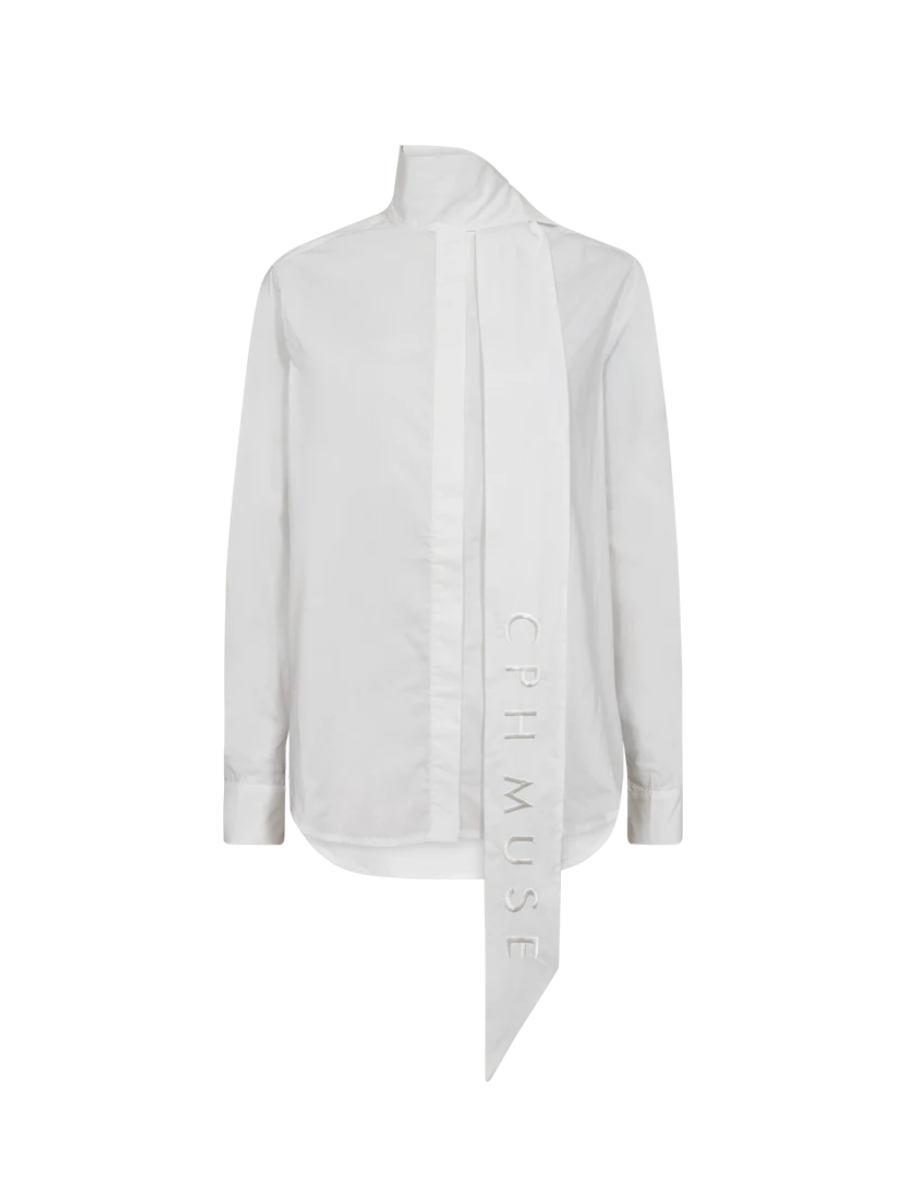 CMPOPLIN SHIRT WHITE - BLUSE MIT SCHAL DETAIL