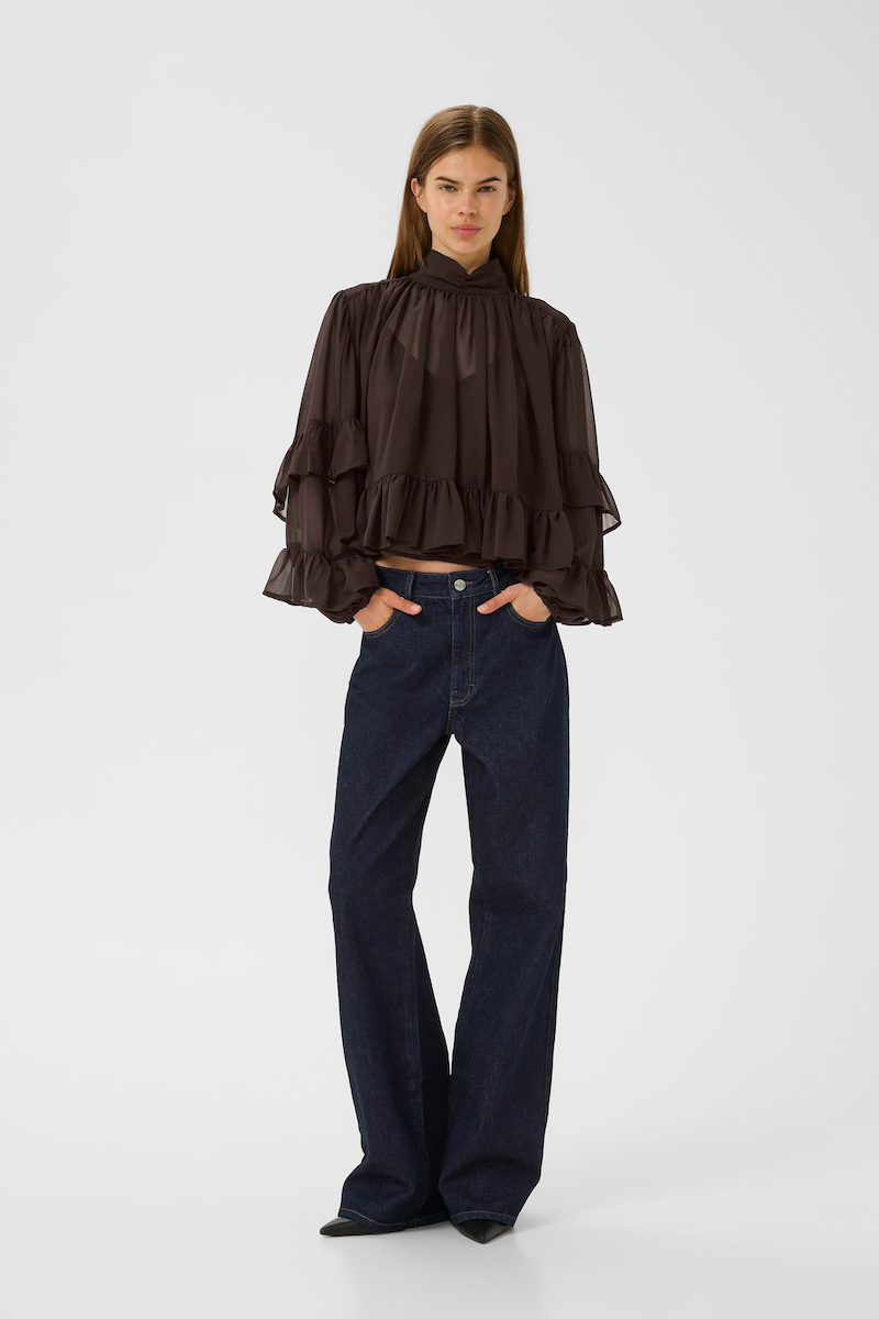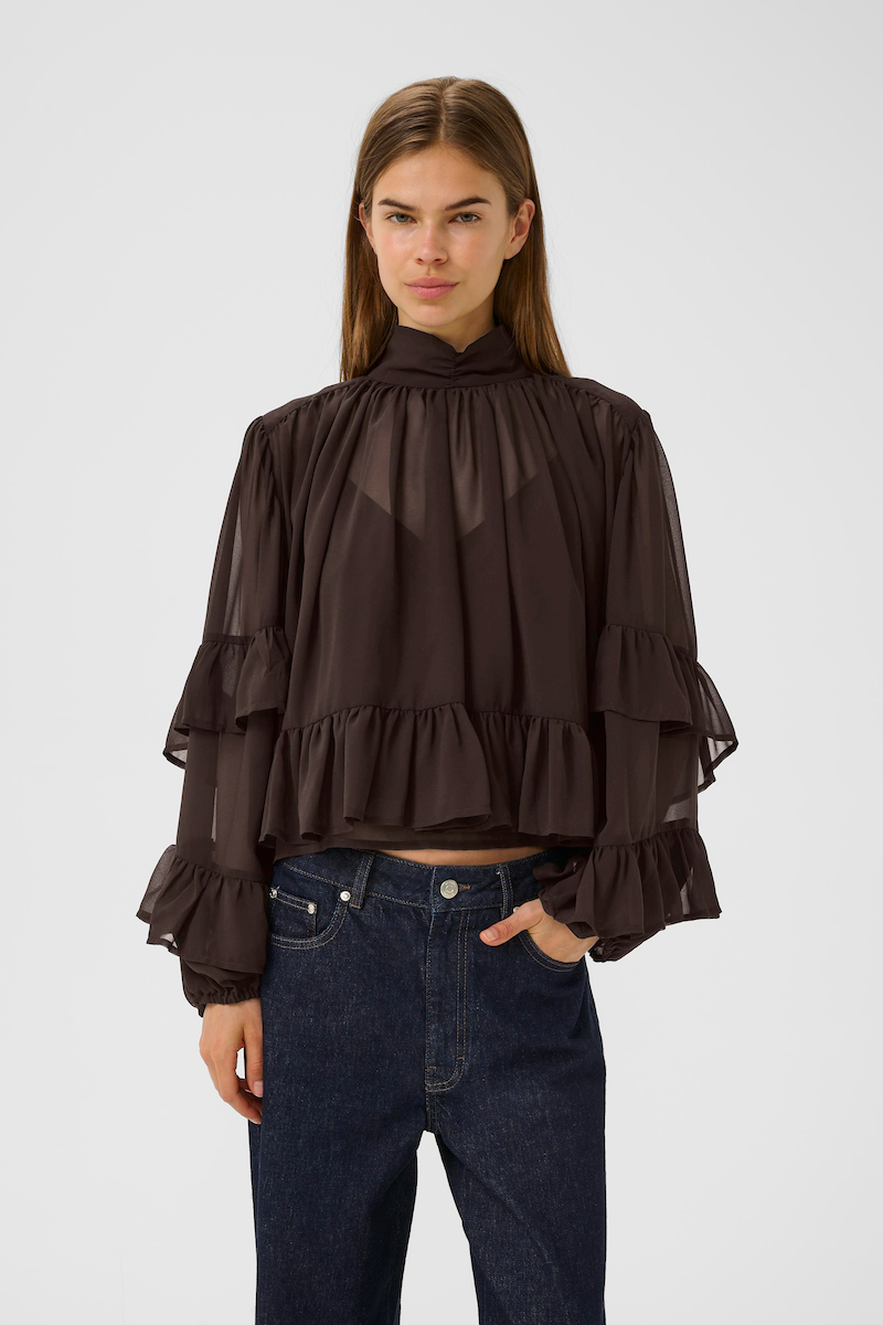 GESTUZ GZMIO BLOUSE - CHIFFON BLUSE MIT TOP IN BRAUN