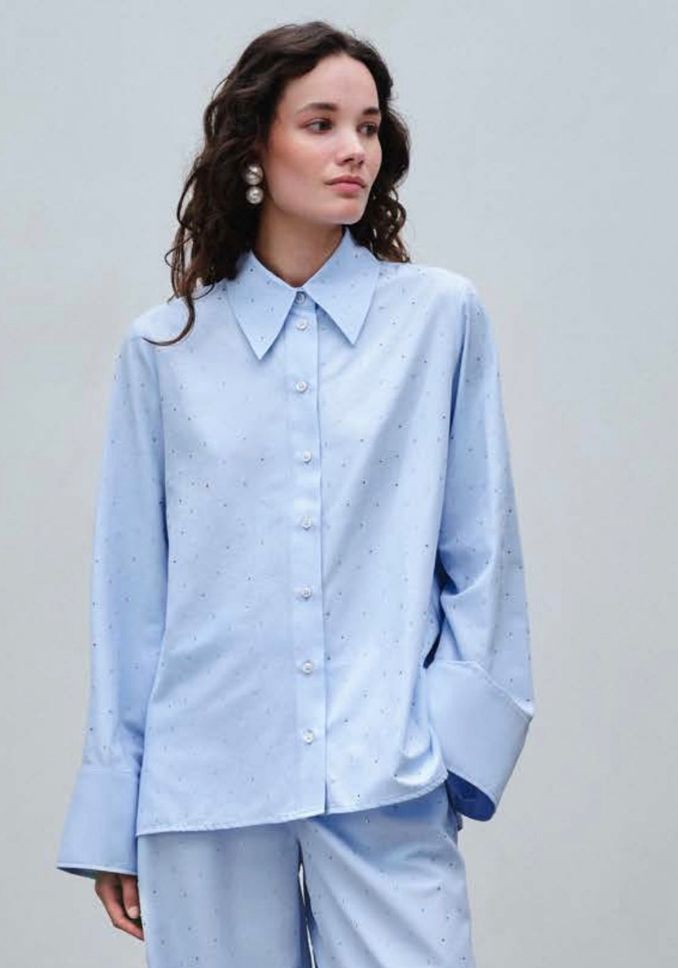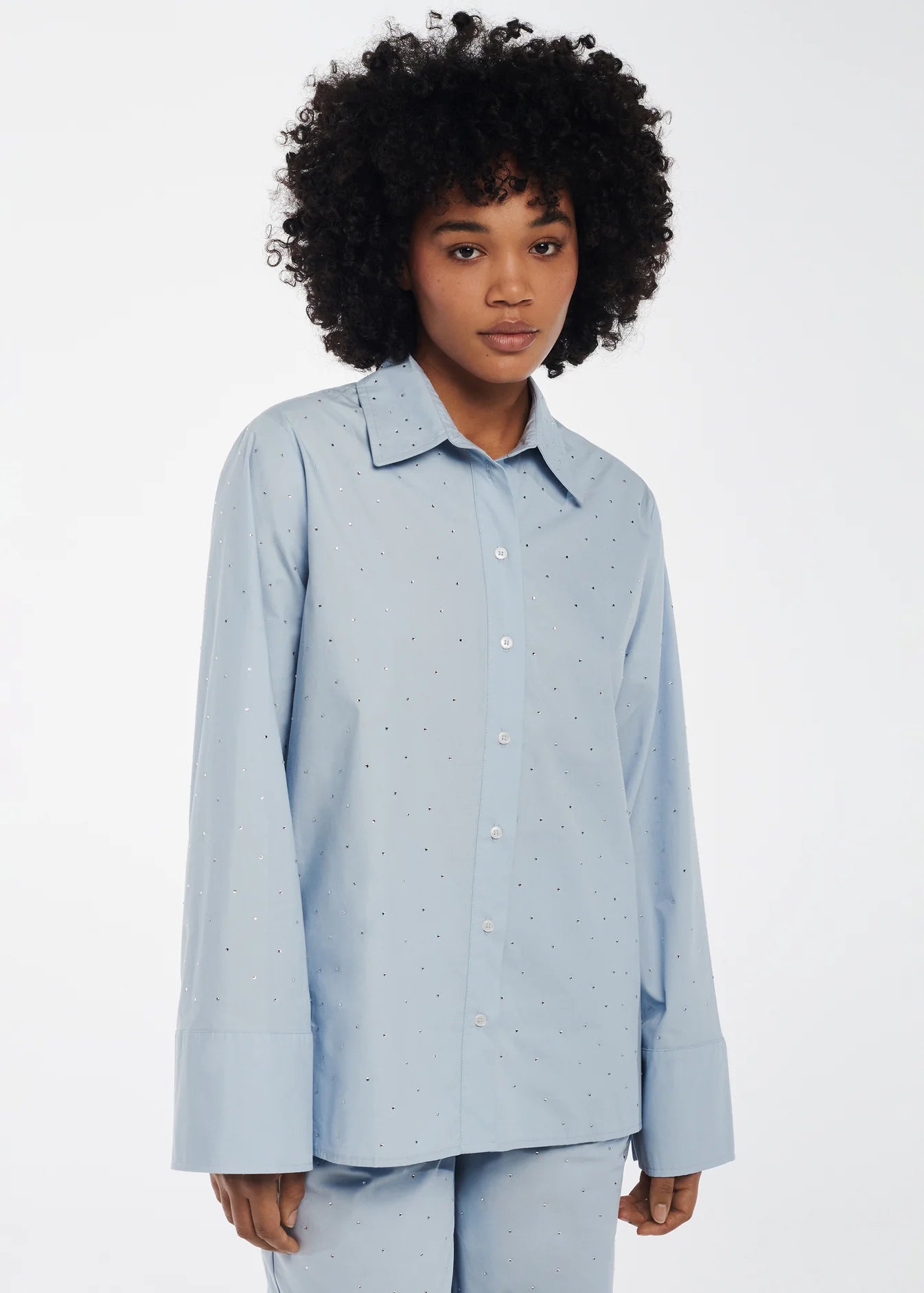 STUDIO AR MAVRA POPLIN SHIRT - HEMD MIT GLITZER STEINEN HELLBLAU