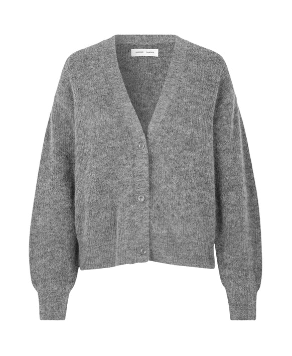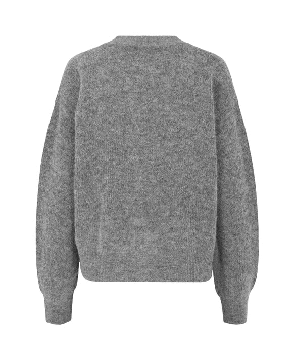 Diese V-Ausschnitt Strickjacke ist etwas weiter geschnitten und hat 3 Knöpfe zum Verschließen. Mellierter Strickgarn aus Merino Wolle, Alpaka und recycled Polyester.