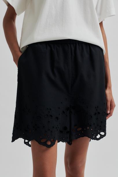 SECOND FEMALE LIMONA SHORTS- SHORTS MIT LOCHSTICKEREI SCHWARZ