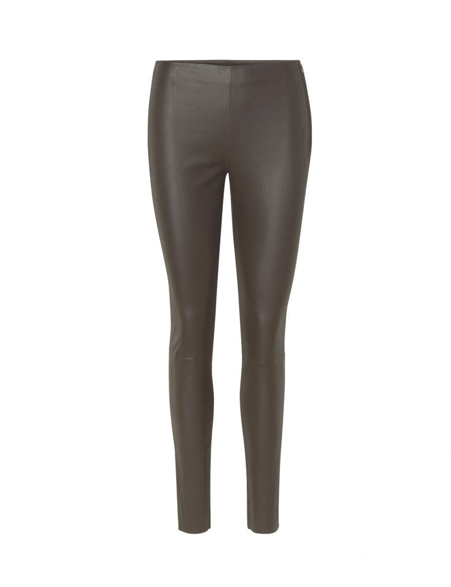 Figurbetonte Stretch Leder Hose bzw. Leggins Gloria ist aus echtem Leder. Durch die tolle Elastizität ermöglicht die Hose perfekte Bewegungsfreiheit. Perfekt für den Layering Look. Kombiniere diese Hose mit einem oversized Pullover oder zu einer Longbluse. Nahtreißverschluss an der Seite. Typische Leder Teilungsnaht unter dem Knie. Farbe Schlamm.