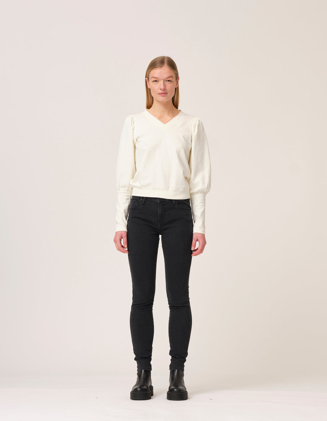 Dylan ist eine schmale knöchellange Jeans in einer "worn black" Waschung. Absteppung und Accessoires wie Knopf, Nieten sind Ton in Ton gehalten. Elastisch und ein angenehmes Gefühl auf der Haut beim Tragen der Jeans, sind nicht die einzigen Eigenschaften. Tomorrow Denim ist ein Brand aus Kopenhagen, welches auf Nachhaltigkeit setzt. Es ist der einzige Denim Brand, welches doppelt zertifiziert ist: mit Nordic Swan Ecolabel und EU Ecolabel.