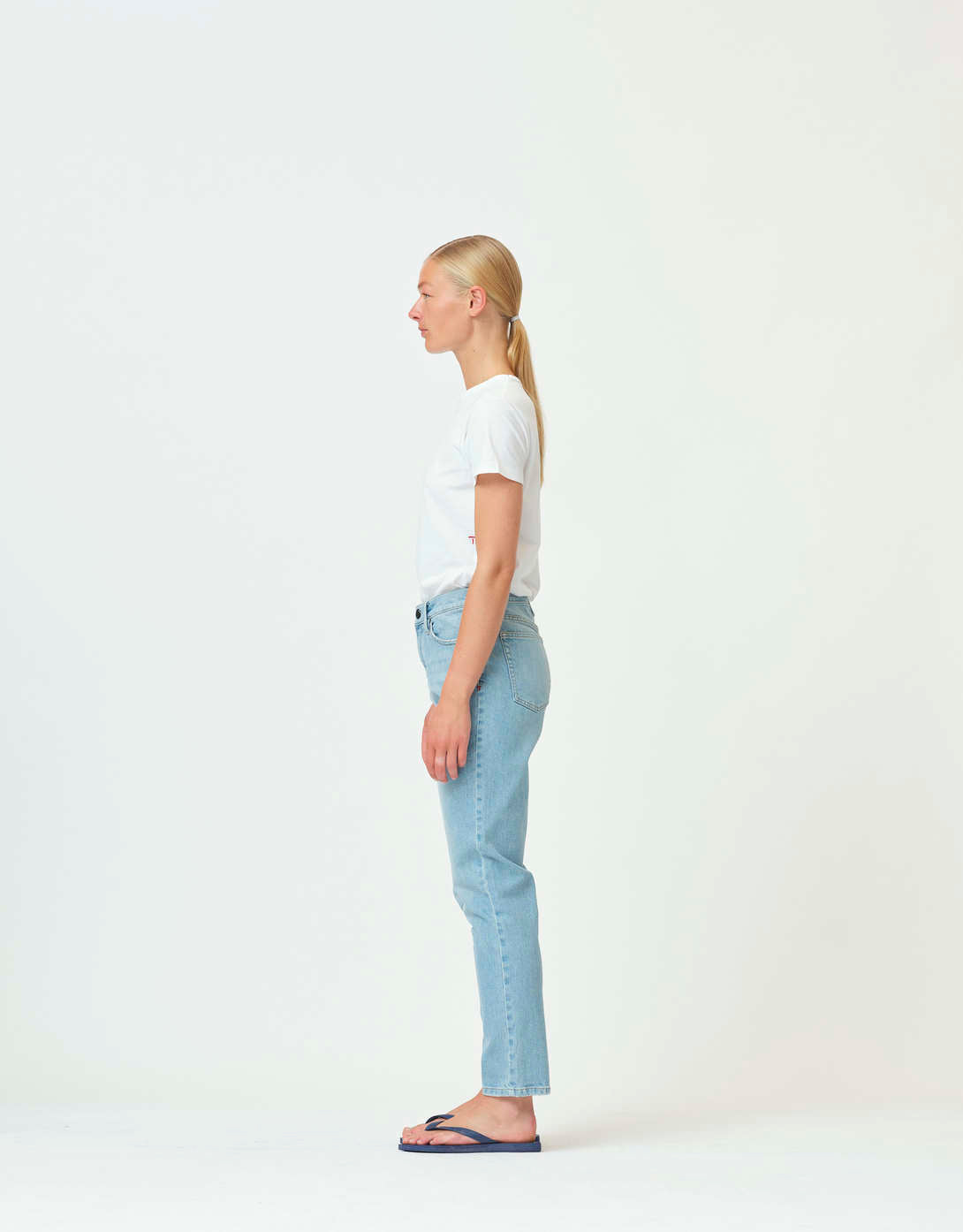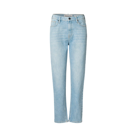 5-Pocket Jeans Teresa hat eine high weist und relaxte Passform. Gerader Beinverlauf , In hell-blauer Waschung. Knöchellang. Aus Bio-Baumwolle.