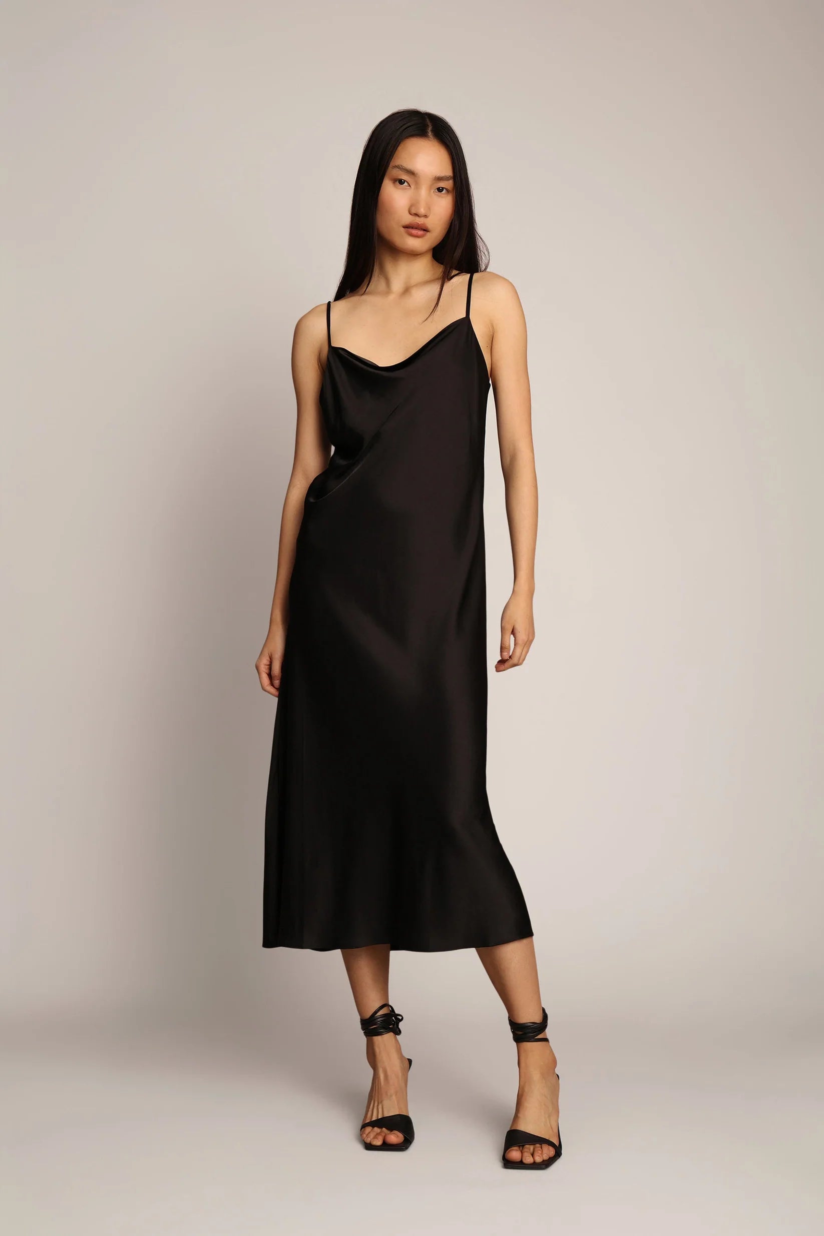 MUNTHE SLIP DRESS BABYLOMA BLACK - KLEID SATIN SCHWARZ