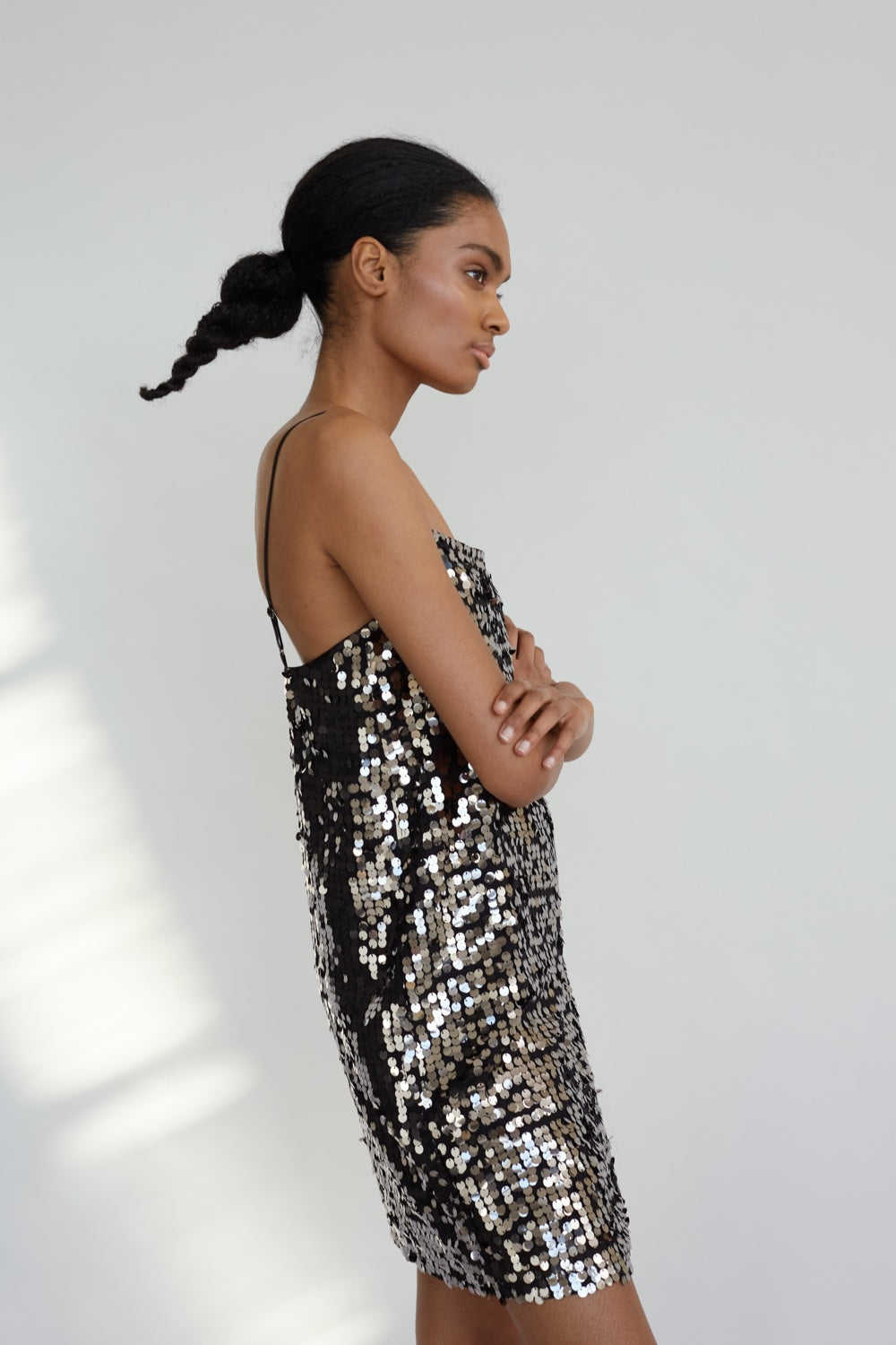 QUINN SILVER DRESS - PAILLETTEN KLEID KURZ