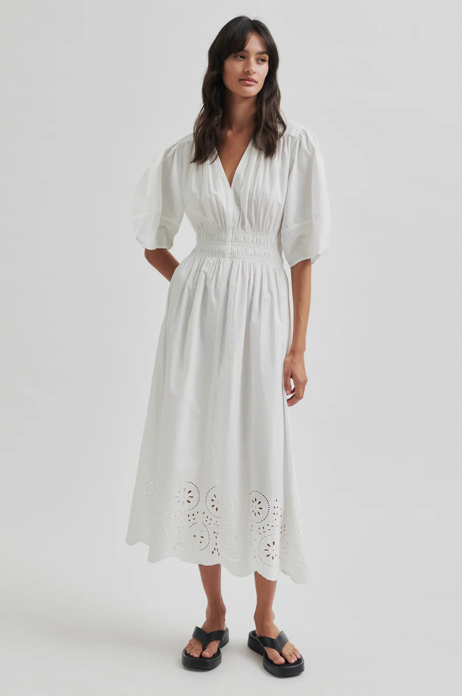SECOND FEMALE ALTHEA DRESS - KLEID WEIß LOCHSTICKEREI