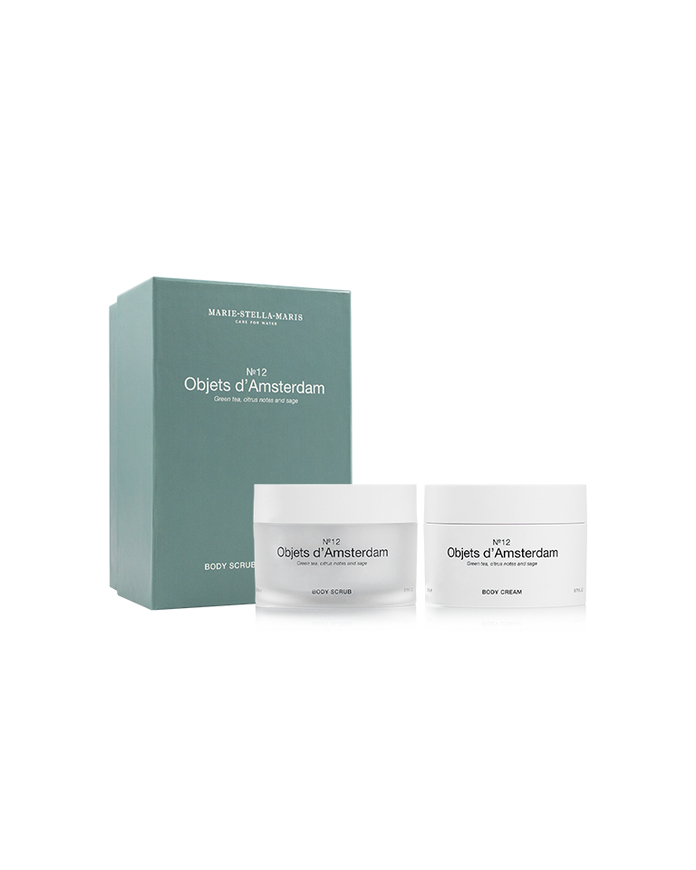 Ein tolles Geschenkset von Marie-Stella-Maris. Im Set enthalten: ein Körperpeeling & Body Creme No.12 Objets d’Amsterdam. Minimalistisches Design trifft auf perfekte Körperpflege. Das angenehme, pflegende Körperpeeling mit Aprikosenkernen reinigt gründlich und regt die Durchblutung an - für eine geschmeidige und junge Haut. Dank des Sonnenblumenöls spendet das Peeling Feuchtigkeit und hinterlässt ein weiches und gesundes Hautgefühl. Keine trockene Haut mehr dank der nährenden Sheabutter und des Mandelöls in der Körpercreme. Die natürlichen Inhaltsstoffe machen Ihre Haut geschmeidig, weich und pflegen sie. Objets d’Amsterdam ist einangenehmer Duft mit Noten von grünem Tee, Zitrusfrüchten und Salbei.