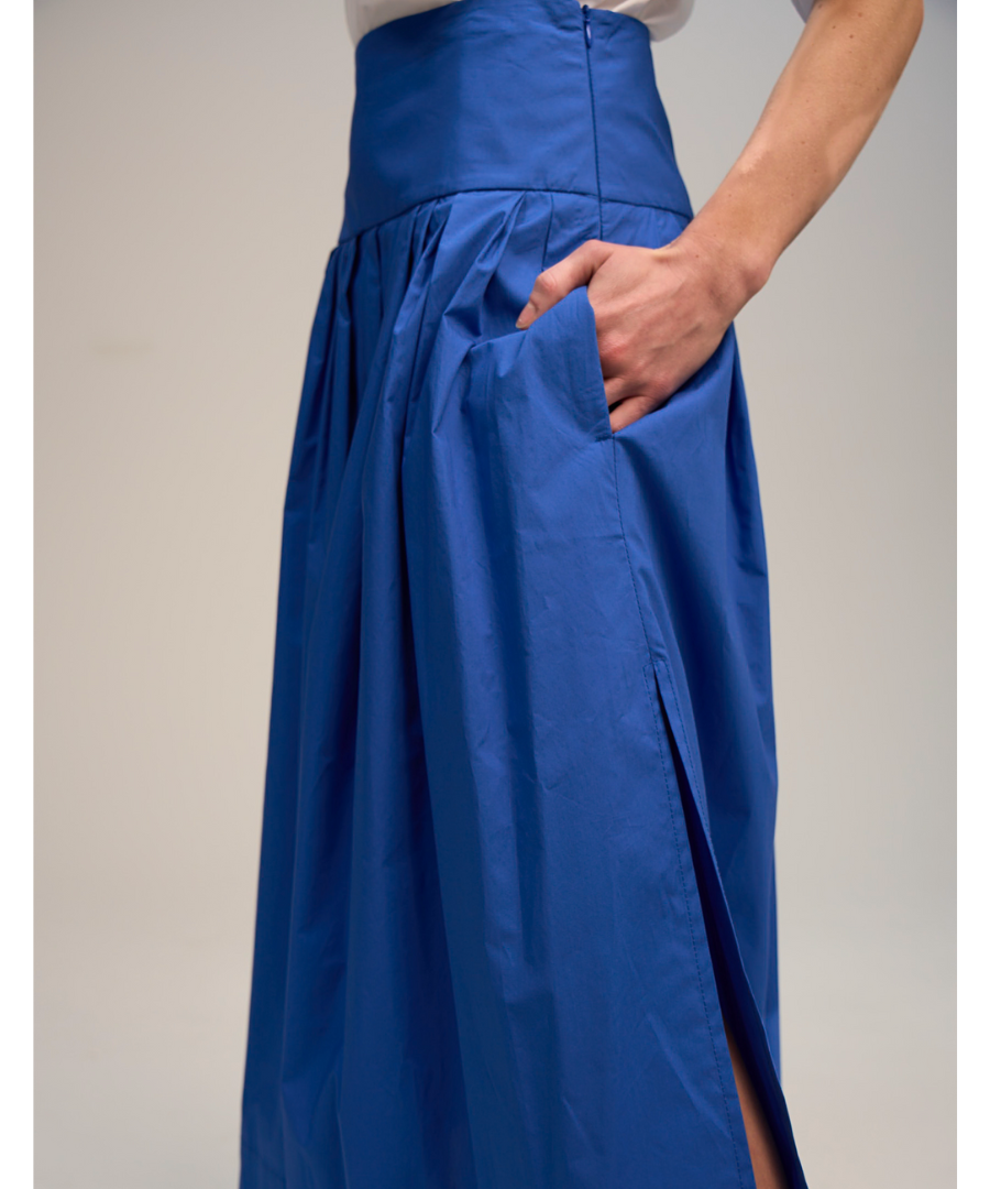 SOLOTRE SKIRT WAVE IN BLUE - ROCK BAUMWOLLE BLAU MIT SCHLITZ