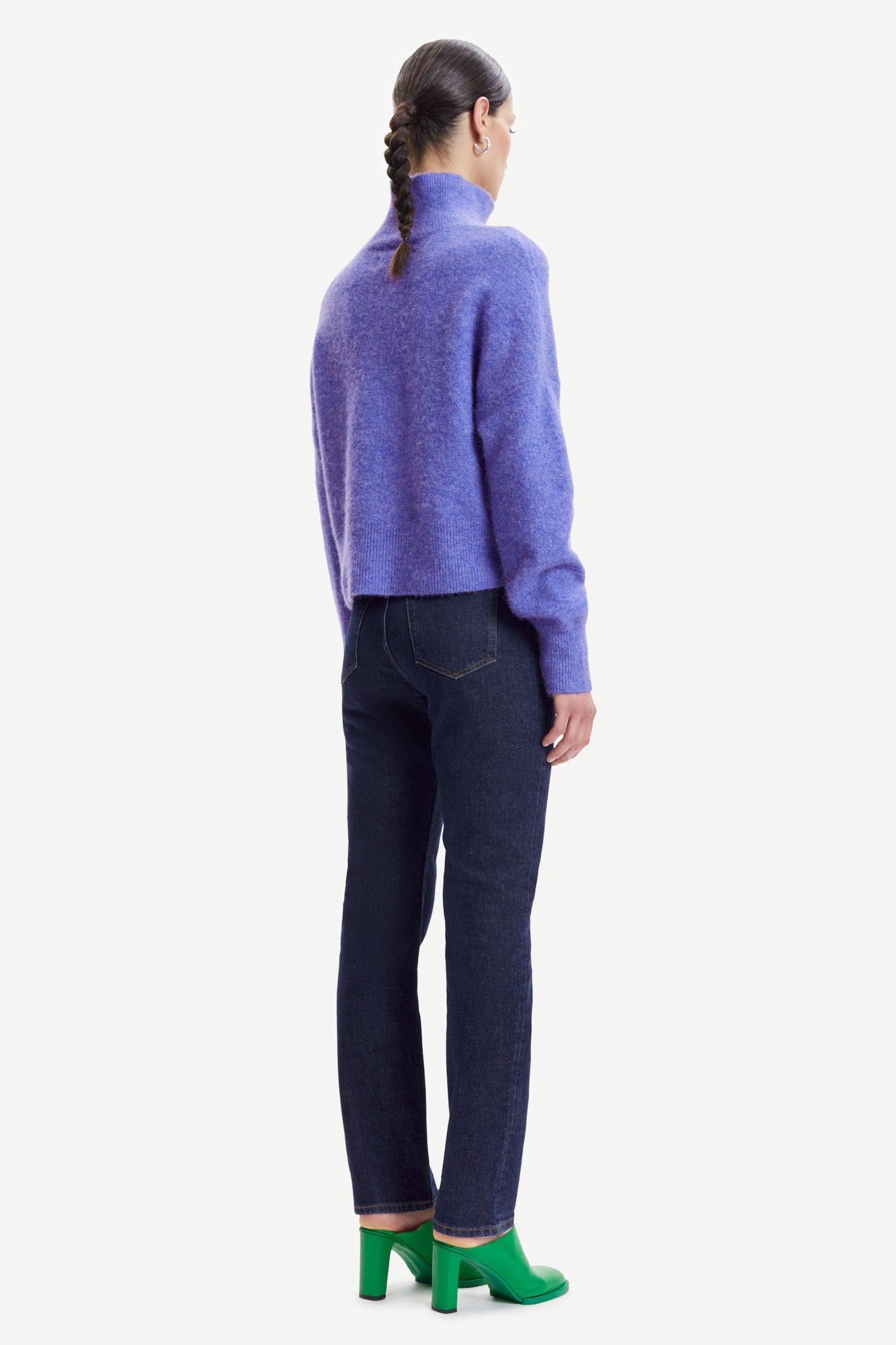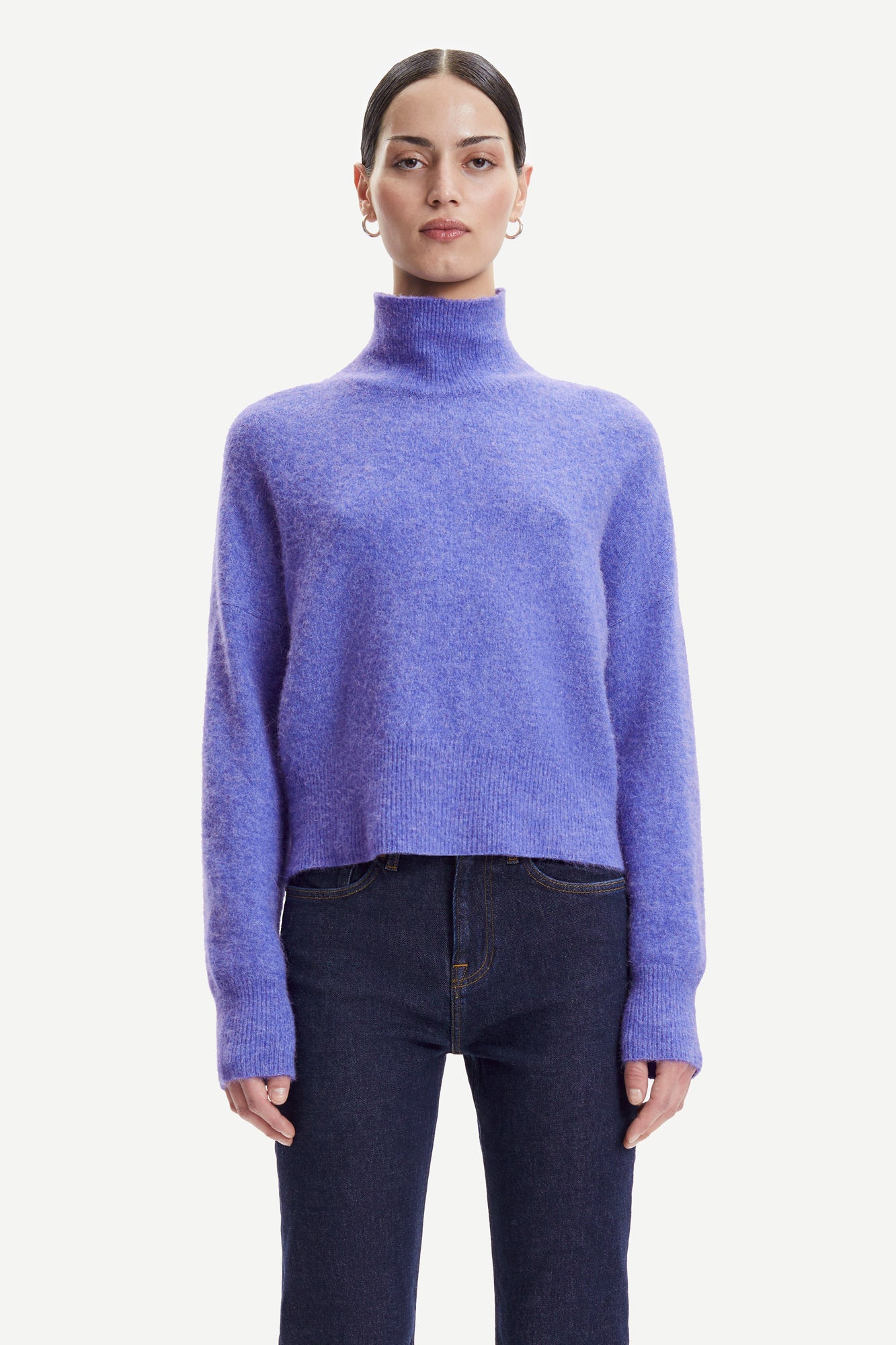 Pullover Nola von Samsoe Samsoe hat einen halsfernen Stehkragen. Boxy Fit bedeutet dass es nicht enganliegende ist, sondern etwas weiter geschnitten ist. Langarm.