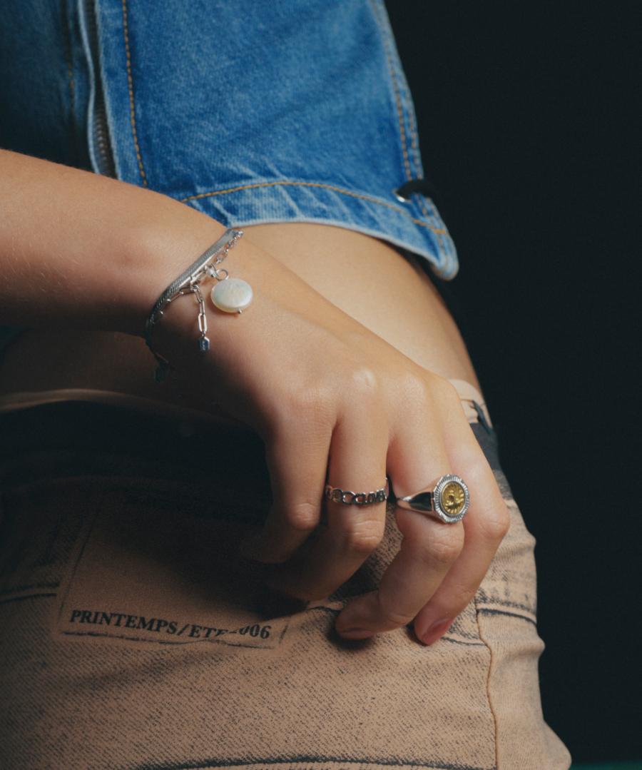 Das coole Armband mit einer Statement Perle vom dänischen Brand Maria Black wertet nicht nur jedes Outfit auf, es ist auch die ideale Basis für Erstellung deines persönlichen Looks durch die verschiedenen Anhänger/ Charms. Brand Maria Black ist bekannt für einzigartige Statement Pieces und steht für Individualität, Kreativität und Einzigartigkeit.