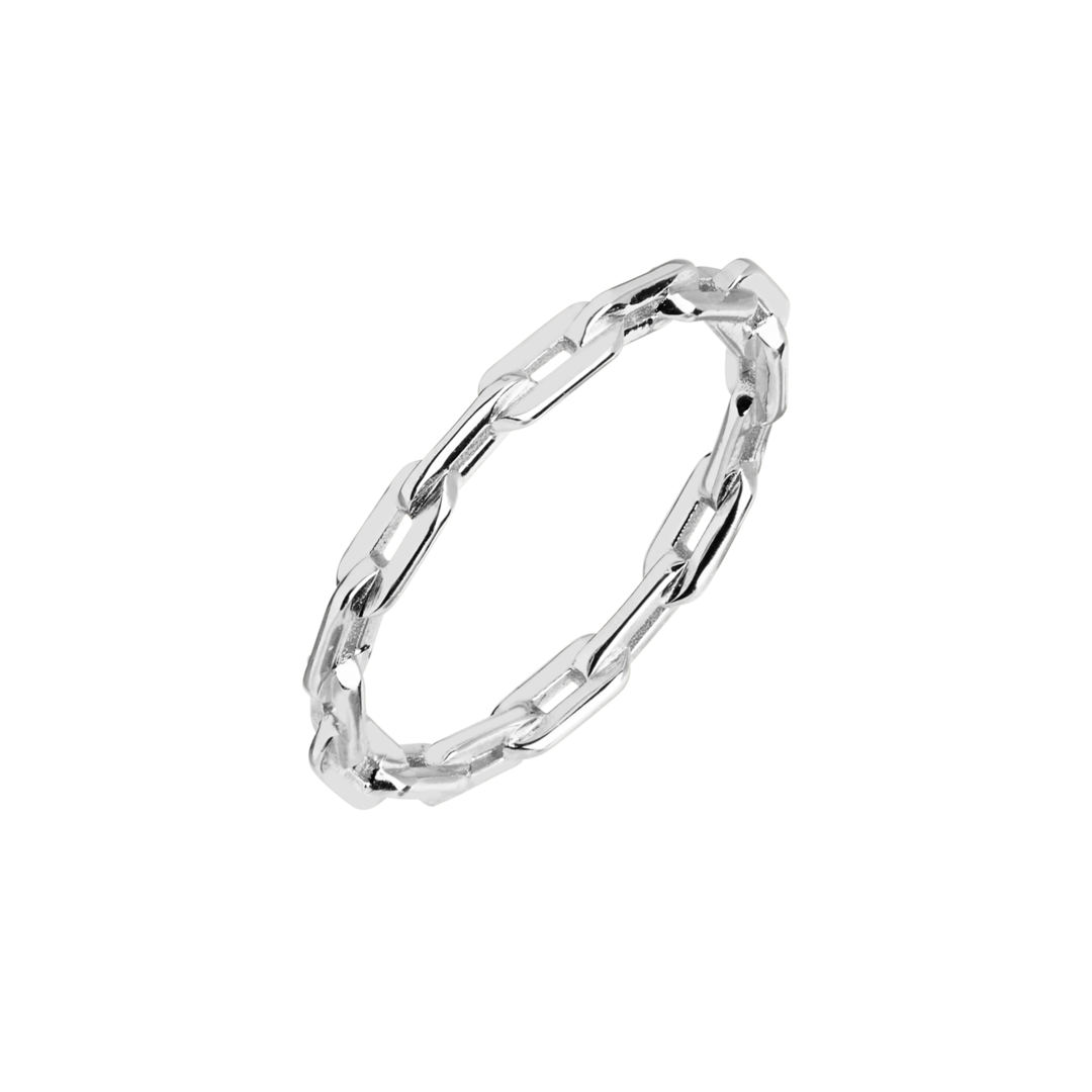 Gemma Ring von Maria Black in Ketten Optik. Für einen coolen Look, kombiniere zwei davon. Der Ring Gemma ist in Sterling Silber, beschichtet mit weißen Rhodium.