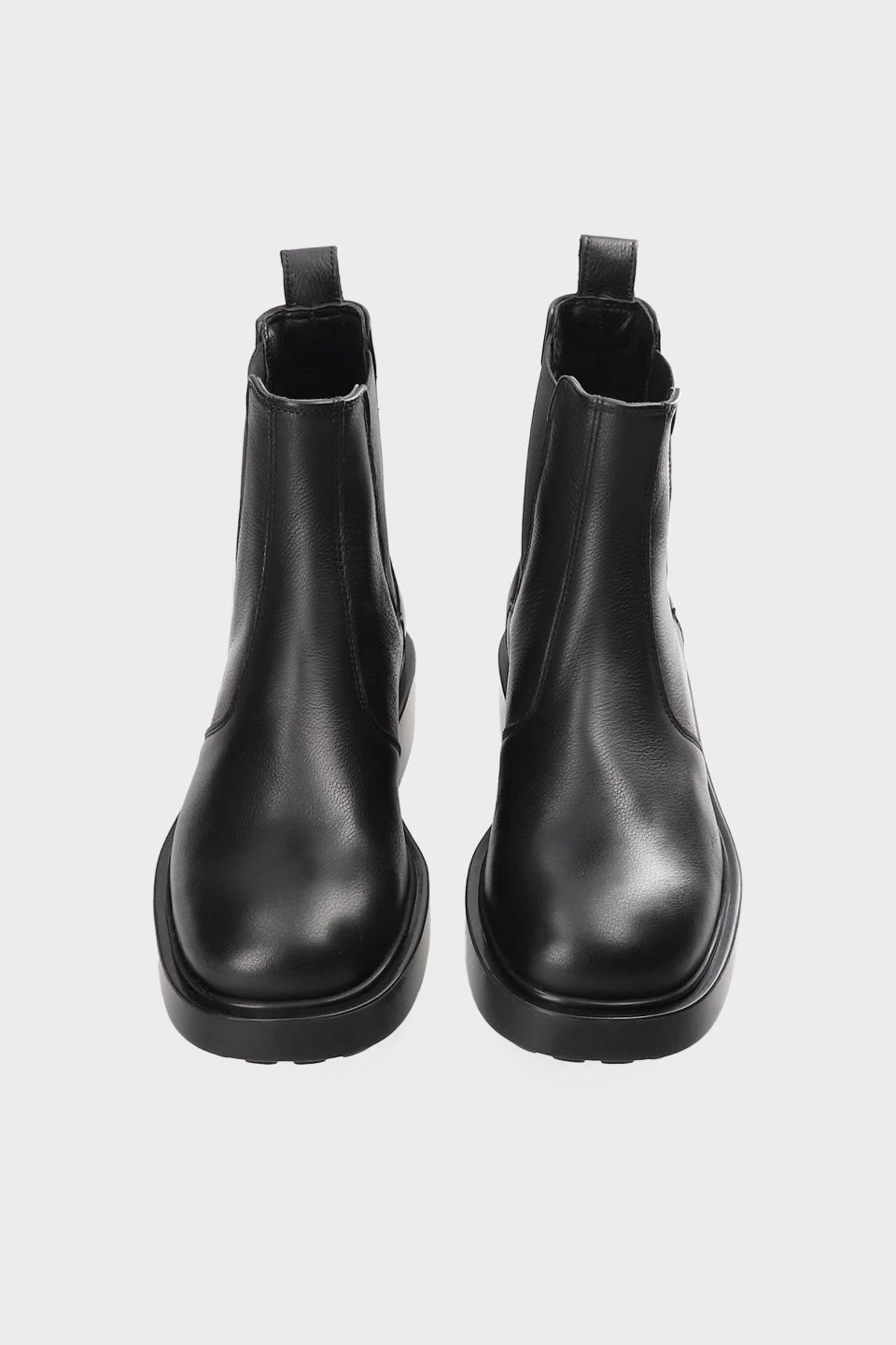 Schlichter Chelsea Boot in schwarzem Leder - ein echter Klassiker. Das subtil gestanztes Logo an der Ferse bringt ein dezentes Branding ins Spiel. Mit seinem minimalistischen Design, der chunky Sohle und den elastischen Einsätzen ist er der perfekte Mix aus Funktion und Style.
