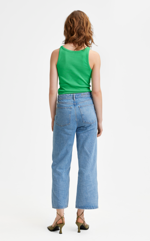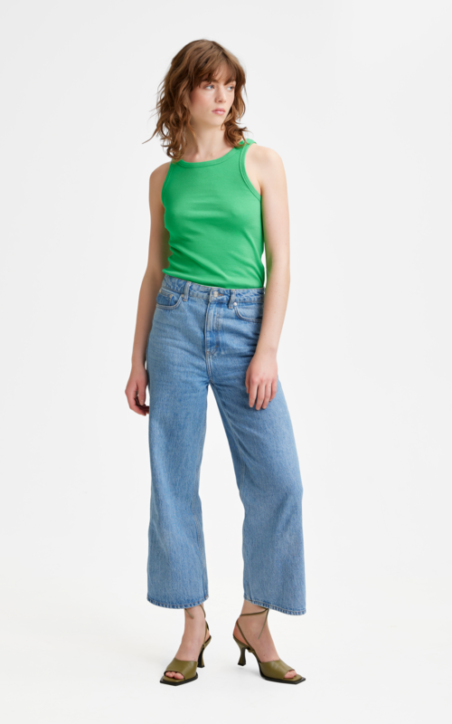 Jersey Top ärmellos in Slim Fit. Durch die gerippte Struktur und Elastane ist die Qualität sehr elastisch und schön angenehm auf der Haut. Diesen Sommer sehr angesagt in den kräftigen Farben. Wie das wunderschöne frische Grün.