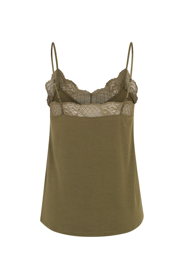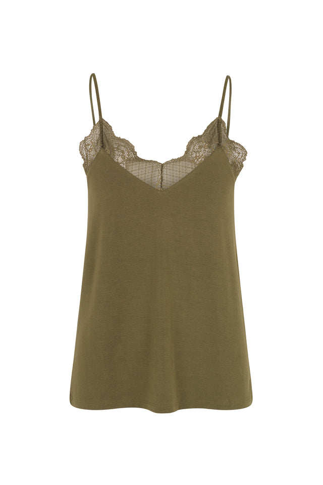 LINDA TOP SILK JERSEY - JERSEY TOP MIT SEIDE OLIV