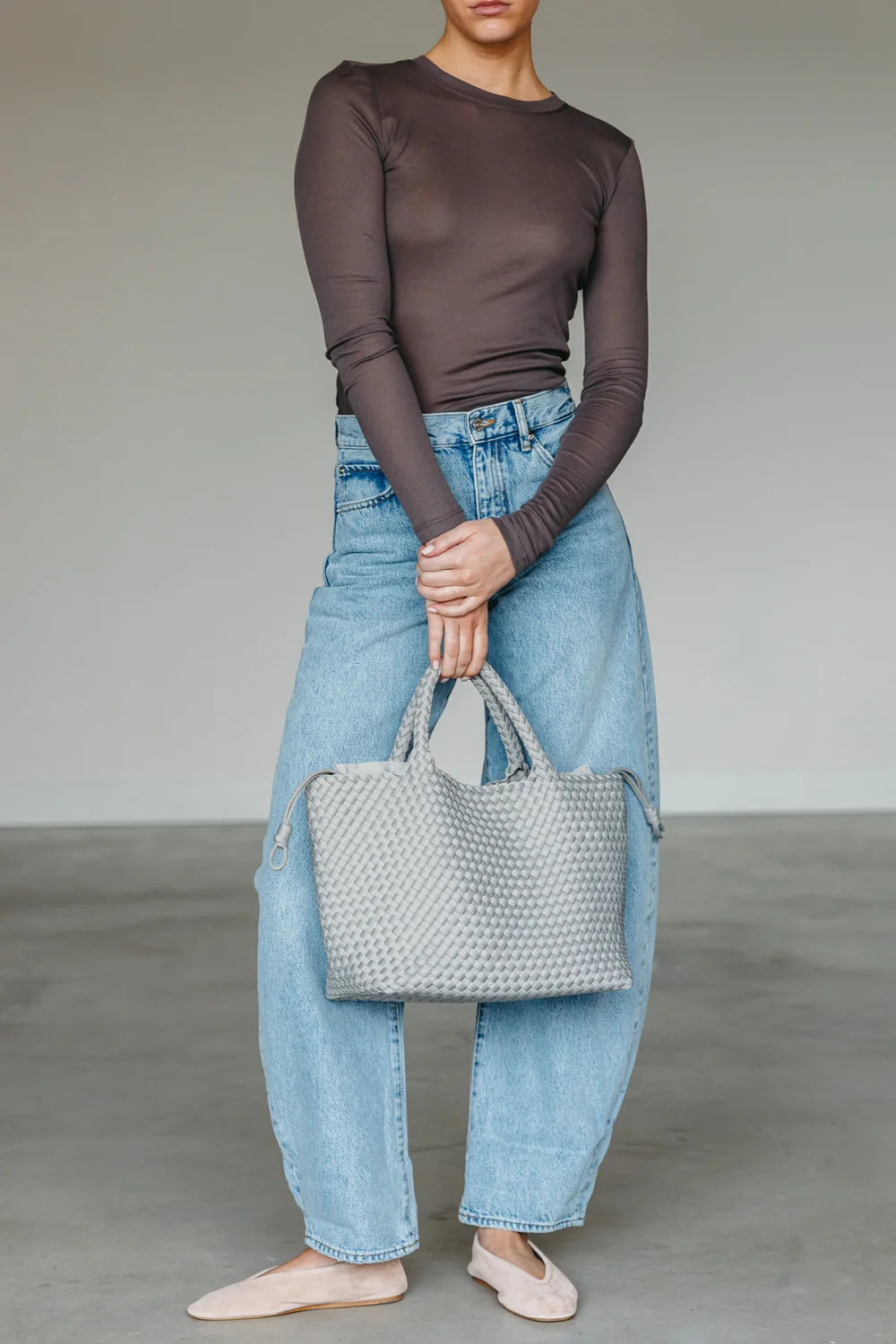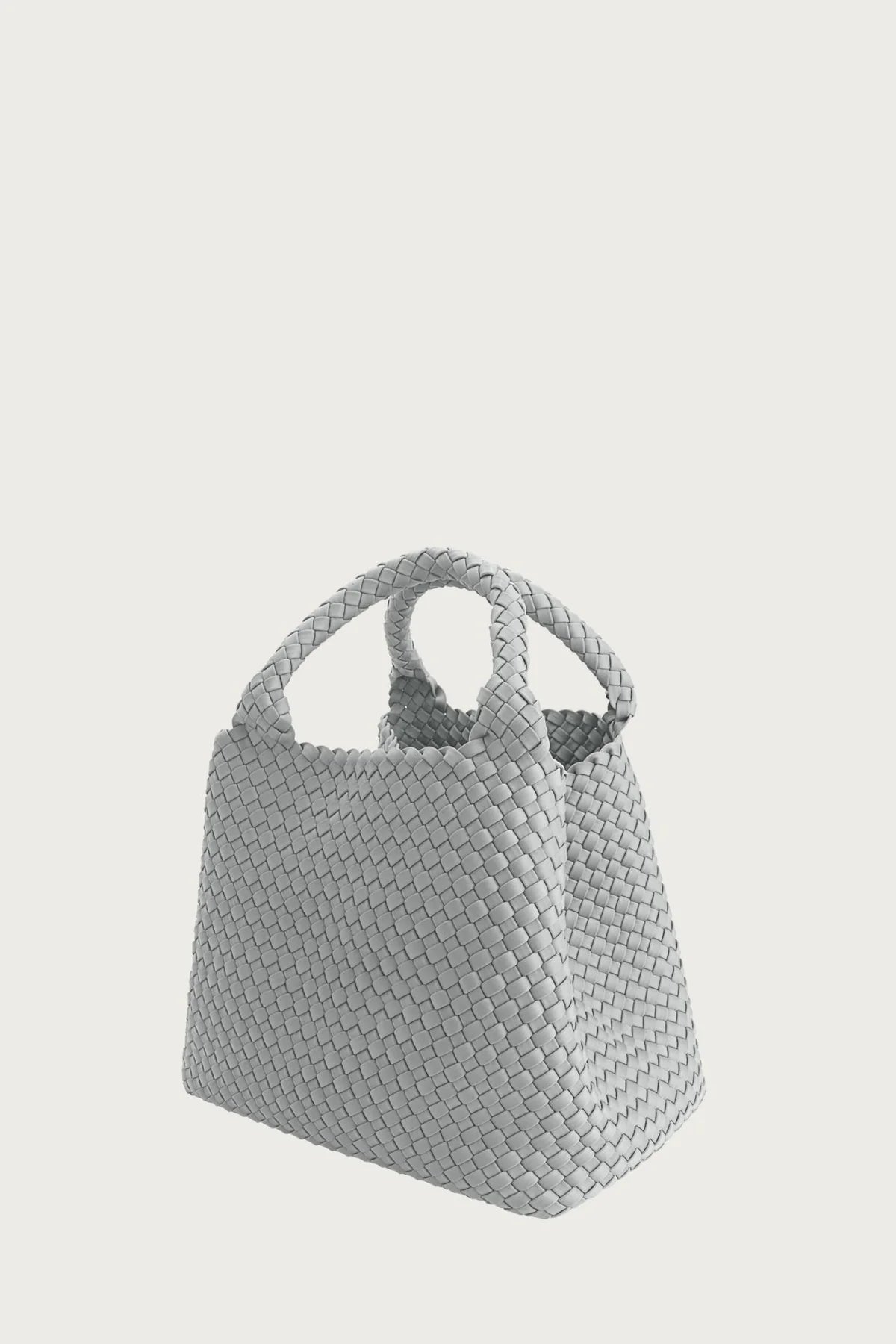 Diese Tasche ist ein Must-have für alle, die auffallen wollen. Ob Fitnessstudio, Strandtag oder Wochenendtrip: Diese geräumige Tasche ist ein perfekter Begleiter für Alle Gelegenheiten. Farbe Silver Seashell ist ein heller Grauton mit urbaner Eleganz. Tasche ist von Hand geflochten aus Neopren & passt zu jeder Jahreszeit, jedem Look, jeder Stimmung. Mit zwei Hänkel versehen, so kannst du sie in der Hand, am Ellbogen oder auf der Schulter tragen. Die Taschen kann leicht vom Schmutz abgewaschen werden und inkludiert ein Wasser-resistentes Innenbeutel. Maße 26cm x 45cm x 20cm