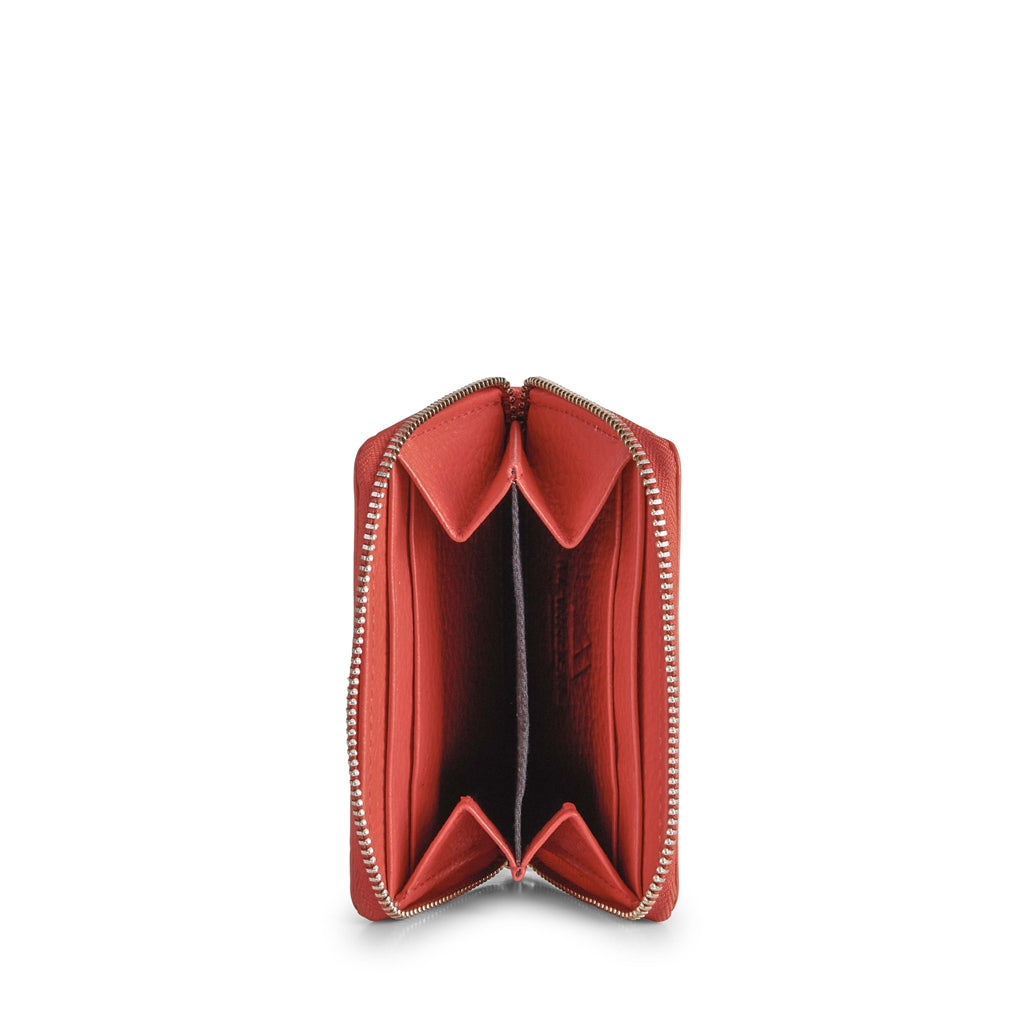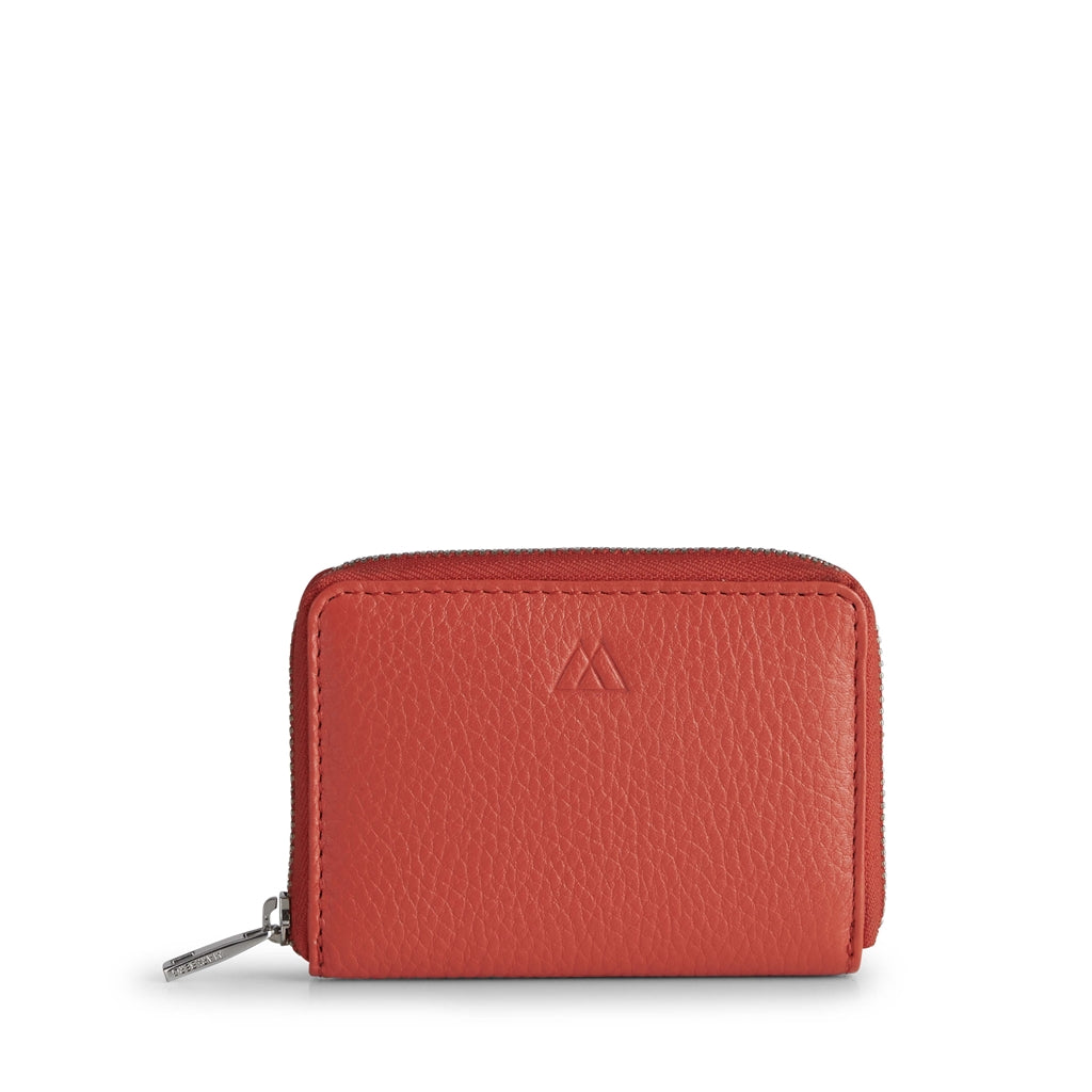 Kleine Geldtasche von Markberg in Farbe rot mit Reißverschluss. Strukturiertes Rind-Leder und Futter aus 100% Baumwolle.